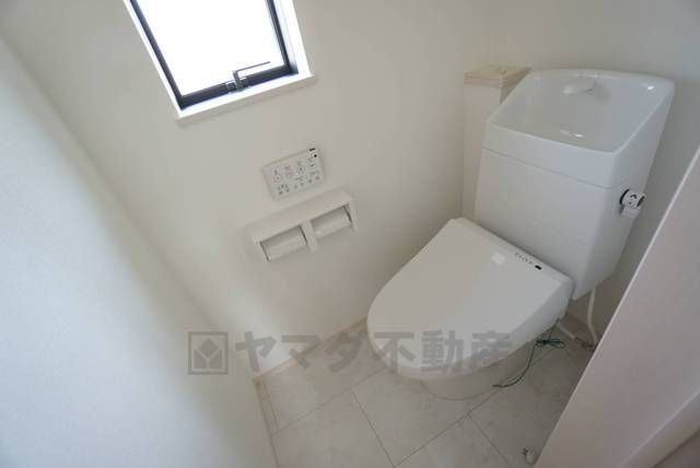 温水洗浄機付トイレです。節水機能もあるので、安心して使えますね。もちろん、1階2階の2ヶ所にトイレがあるので、忙しい朝にもゆとりができますね。
