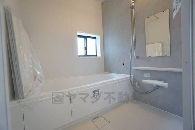 1日の疲れを癒すくつろぎのバスルーム。足を伸ばしてもゆったりと入れるサイズです。お子様と一緒にお風呂に入っても狭くないですね^^