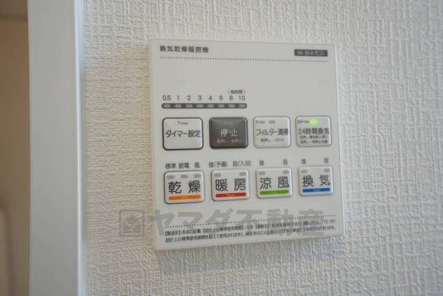 雨の日の洗濯も安心できる浴室暖房乾燥機付き浴室。リモコンで操作もボタン1つで簡単。 浴室暖房乾燥機には、暖房、乾燥、涼風、換気の4つの機能が付いています。タイマー付きです。