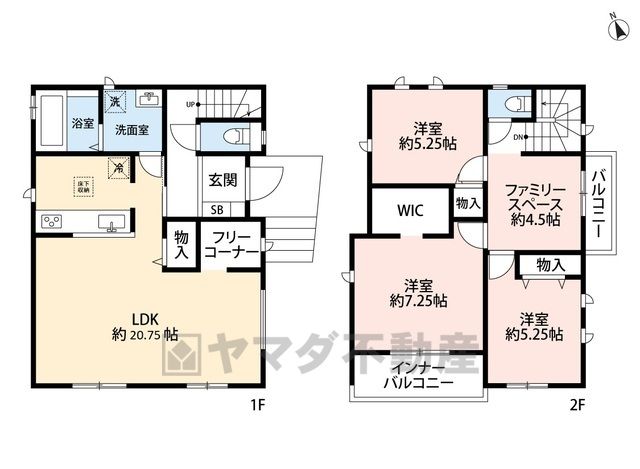 LDK20.7畳(1F)、洋7.2畳(2F)、洋5.2畳(2F)、その他4.5畳(2F) |