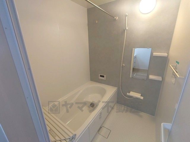 同仕様写真。1日の疲れを癒すくつろぎのバスルーム。足を伸ばしてもゆったりと入れるサイズです。お子様と一緒にお風呂に入っても狭くないですね^^
