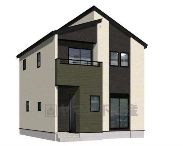 完成予想図。現況と異なる場合は現況優先となります。外壁はツートンカラーでスタイリッシュな外観で来客の時が待ち遠しくなりますね。