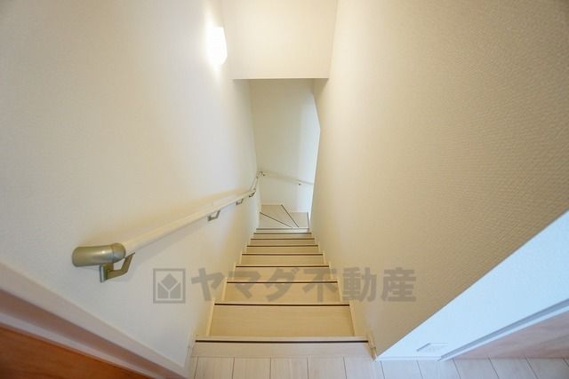 同仕様写真。ご年配の方でも安心できる、手すり付き階段です^^段差も低めで設定されてますので安全性にも優れてますね^^
