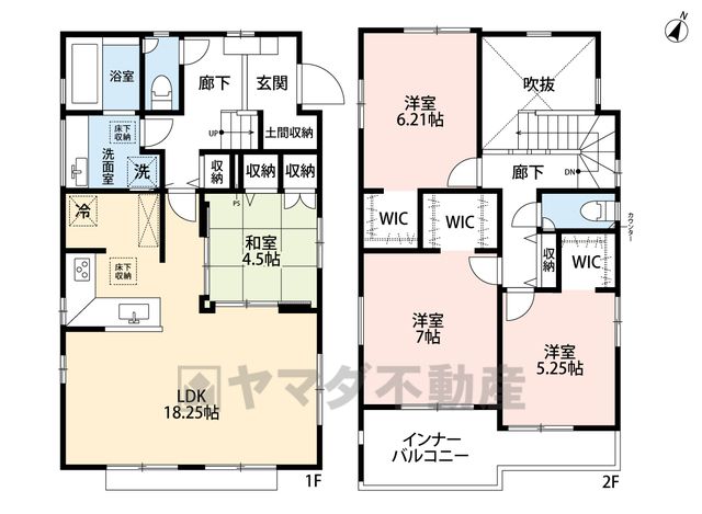 LDK18.2畳(1F)、和4.5畳(1F)、洋7畳(2F)、洋6.2畳(2F)、洋5.2畳(2F) |