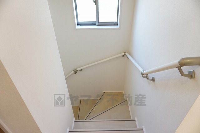 同仕様写真。ご年配の方でも安心できる、手すり付き階段です^^段差も低めで設定されてますので安全性にも優れてますね^^
