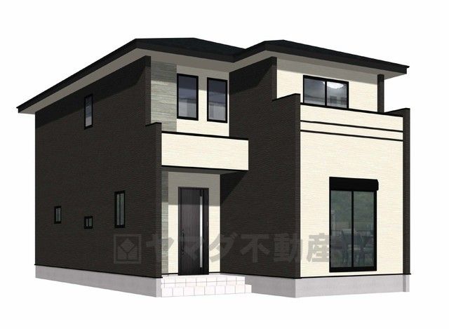 完成予想図。ブラックを基調としたシンプルで飽きの来ない外観です。 設備仕様も充実した新築戸建です。 快適でゆとりのある生活空間で新生活を始めましょう^^