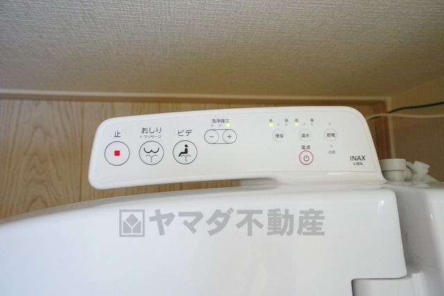 同仕様写真。温水洗浄機付トイレです。節水機能もあるので、安心して使えますね。