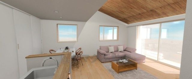 完成予想図。土地面積は広々62坪以上。車もラクラク2台駐車できます。お庭付きで家庭菜園やガーデニングなど楽しみが広がるスペースです^^