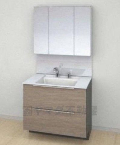 三面鏡裏収納付き洗面化粧台です^^ 鏡の裏に歯磨きセットやスキンケア用品などの収納できて便利ですね^^