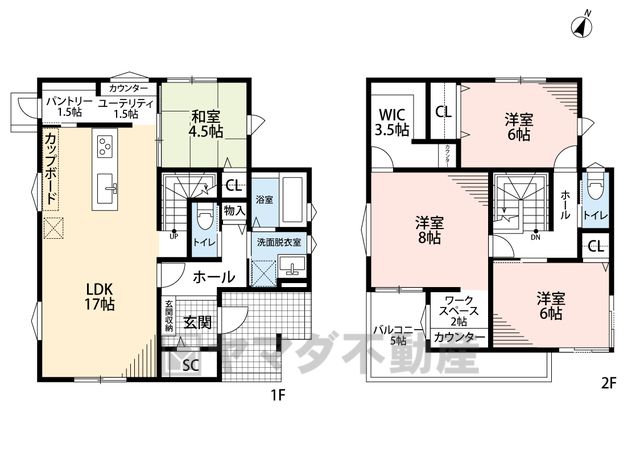 LDK17畳(1F)、和4.5畳(1F)、洋6畳(2F)、洋8畳(2F) |