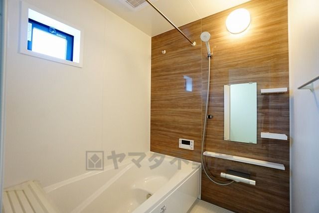 同仕様写真。1日の疲れを癒すくつろぎのバスルーム。足を伸ばしてもゆったりと入れるサイズです。お子様と一緒にお風呂に入っても狭くないですね^^