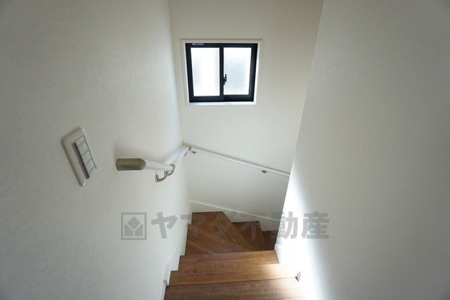 同仕様写真。お子様も高齢の方も安心して上り下りができる手摺がついた安心設計です。 階段には小窓を配置しました。日中でも暗くなりがちな階段下が明るくなり安全ですね。