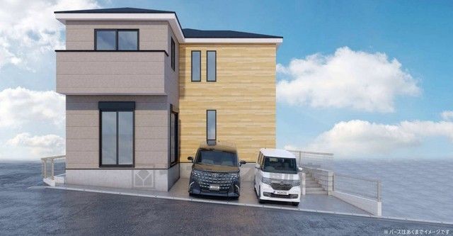 完成予想図。流行に左右されないベーシックなカラーリングは、永住にふさわしい佇まいです。 10年間の瑕疵保証が付いた安心の新築戸建。最新の設備で気持ちの良い新生活を送りませんか。