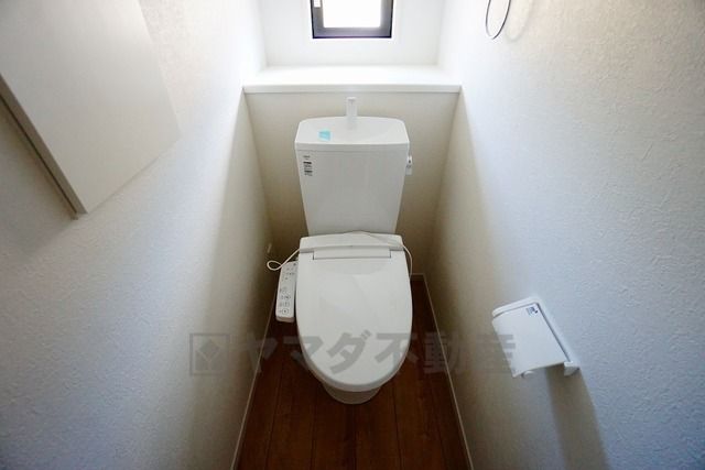 同仕様写真。温水洗浄機付トイレです。節水機能もあるので、安心して使えますね。もちろん、1階2階の2ヶ所にトイレがあるので、忙しい朝にもゆとりができますね。