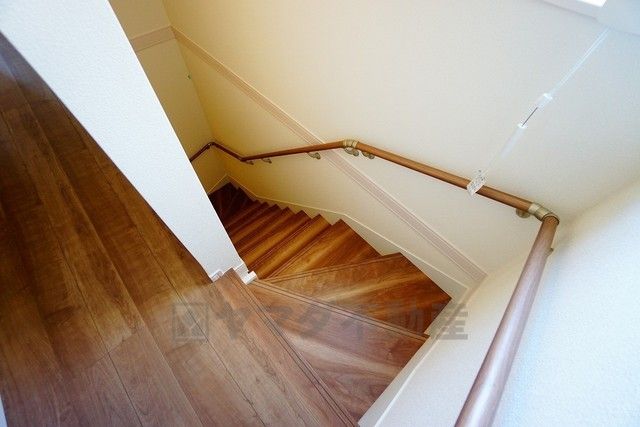 同仕様写真。ご年配の方でも安心できる、手すり付き階段です^^段差も低めで設定されてますので安全性にも優れてますね^^