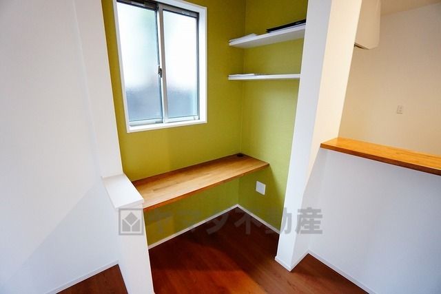 同仕様写真。対面キッチン横にあるスタディーコーナー。キッチンからお子様のお勉強にも目が届きます。玄関の収納もしっかりとれます。
